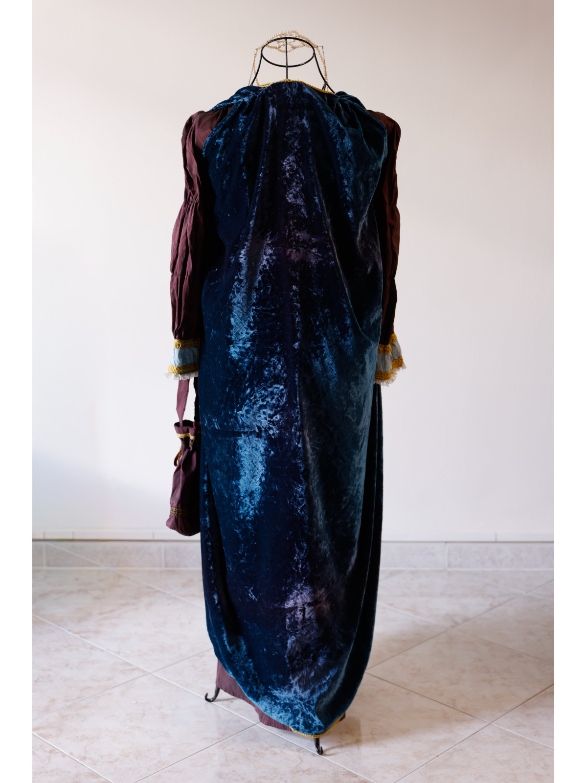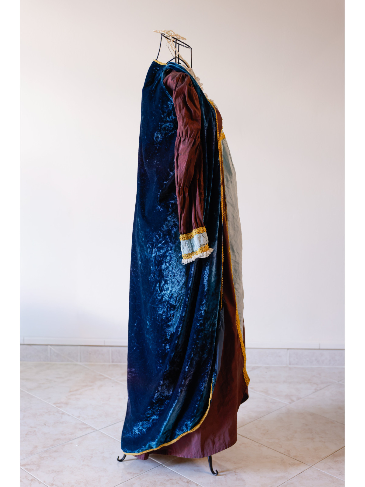 - Mantello in velluto blu con bordature dorate e passamaneria pregiata